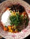 Une crudité qui vous en met plein les papilles, un taboulé qui se renouvelle en fonction de la semoule utilisée c'est-à-dire du légume, et qui évolue en fonction des saisons (du poivron et des tomates à la belle saison...) et du goût, du goût !!!!